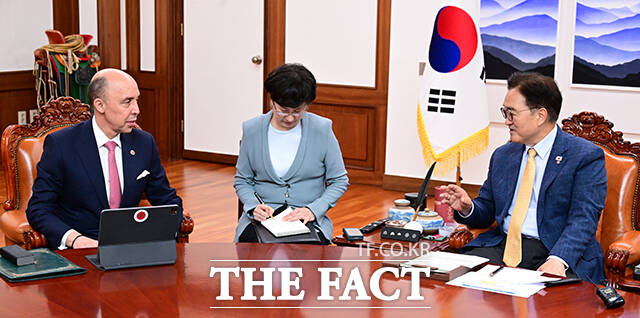 우원식 국회의장은 이날 샤픽 라샤디 주한모로코대사를 맞아 한국전쟁 당시 숨진 모로코 국민의 희생에 사의를 표하고 긴밀한 관계를 맺고 있는 에너지·건설 분야 외 AI, 철도, 방산 등 미래지향적인 산업 분야까지 교류를 확대해 나가자고 제안했다.