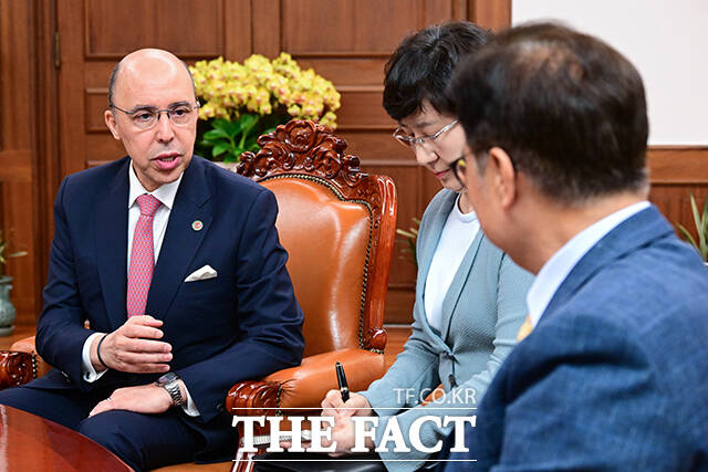 우원식 의장은 "한국전쟁 당시 모로코 군인들이 참전해 8분이 희생당했다. 모로코 국민들의 고귀한 희생에 대해 다시 한번 깊이 사의를 표한다"면서 "최근 양국 간 고위급 교류가 활성화되고 있어 관계가 견고해지고 있는 것을 환영한다"고 말했다.