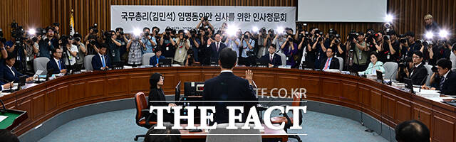 [더팩트ㅣ국회=남윤호 기자] 김민석 국무총리 후보자가 24일 서울 여의도 국회에서 열린 인사청문회에 출석해 후보자 선서를 하고 있다.