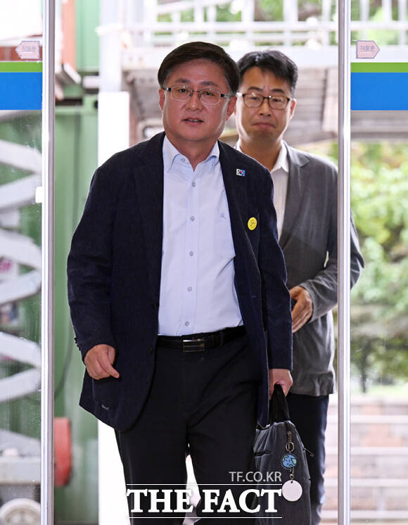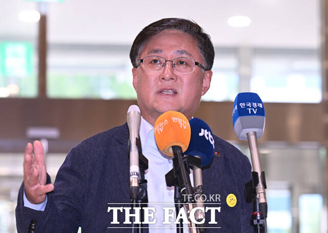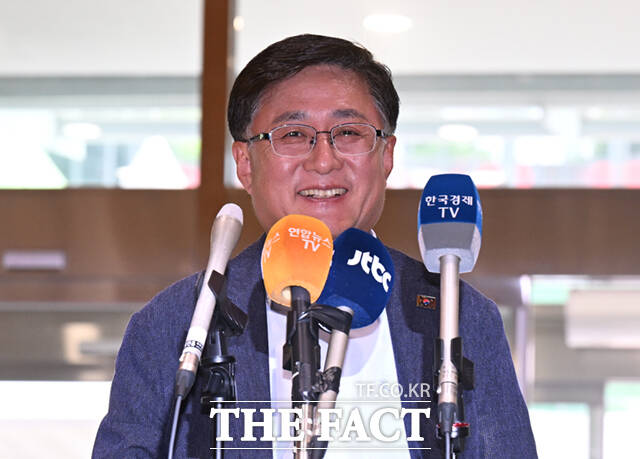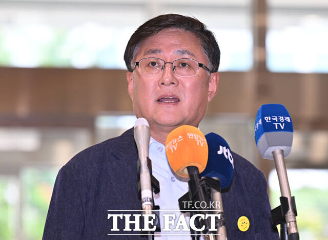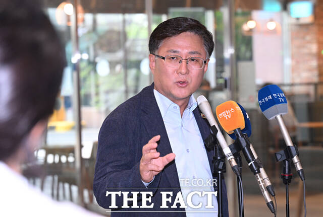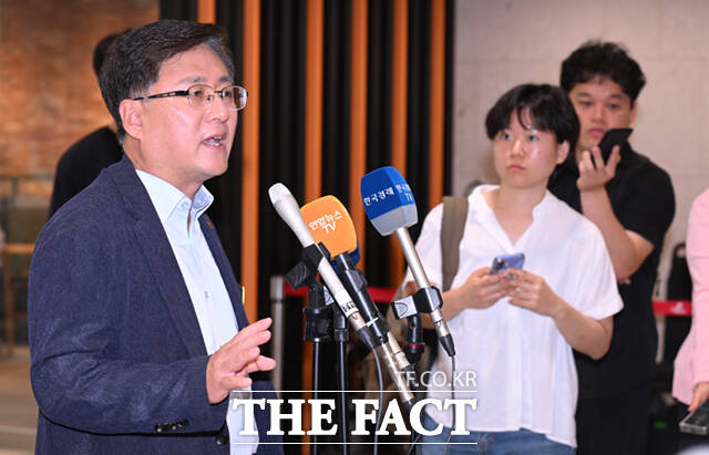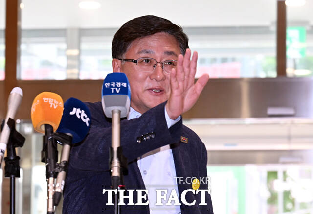 [더팩트ㅣ이새롬 기자] 환경부 장관 후보자로 지명된 김성환 더불어민주당 의원이 24일 오전 서울 여의도 이룸센터로 출근하며 지명 소감을 밝히고 있다.