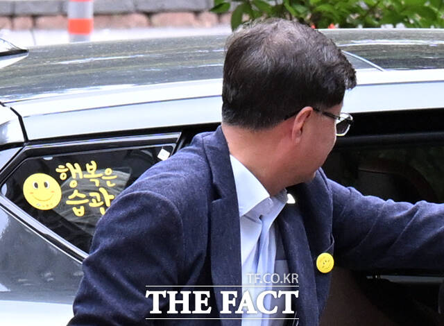 노원구청장 시절부터 '행복은 삶의 습관입니다' 운동을 펼쳐 온 김 후보자는 이날 역시 스마일 배지를 가슴에 단 채 전기차를 타고 출근했다.