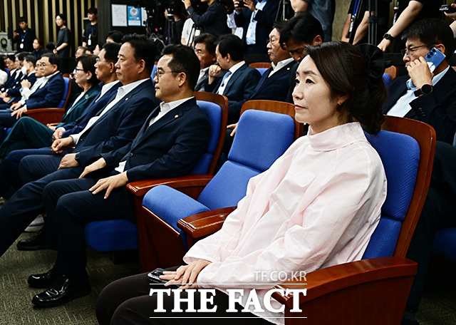 [더팩트ㅣ국회=배정한 기자] 여성가족부 장관 후보자로 지명된 강선우 더불어민주당 의원이 24일 오후 서울 여의도 국회에서 열린 의원총회에 참석하고 있다.hany@tf.co.kr사진영상기획부 photo@tf.co.kr
