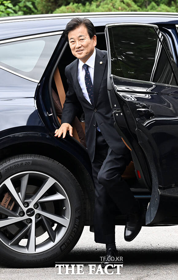[더팩트ㅣ임영무 기자] 정동영 통일부 장관 후보자가 24일 오후 서울 종로구 통일부 남북관계관리단에 마련된 인사 청문 준비 사무실로 첫 출근을 하고 있다.