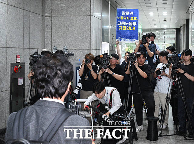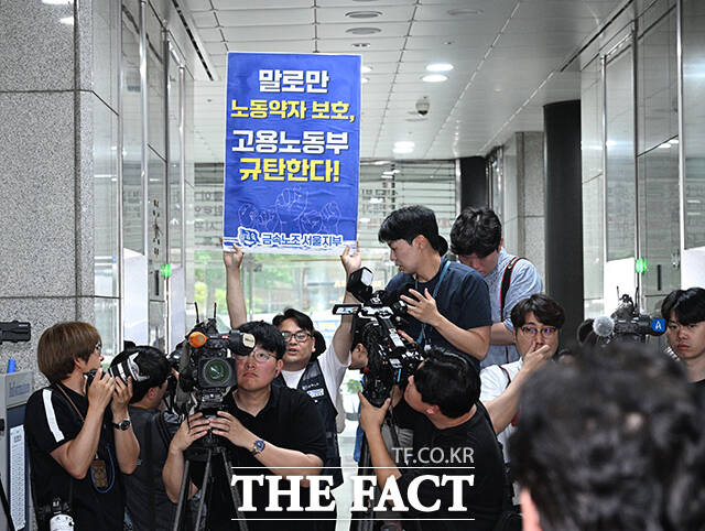 '불법사업장 조사해 달라!' 김영훈 노동부 장관 향해 피켓 든 민주노총 [TF사진관]