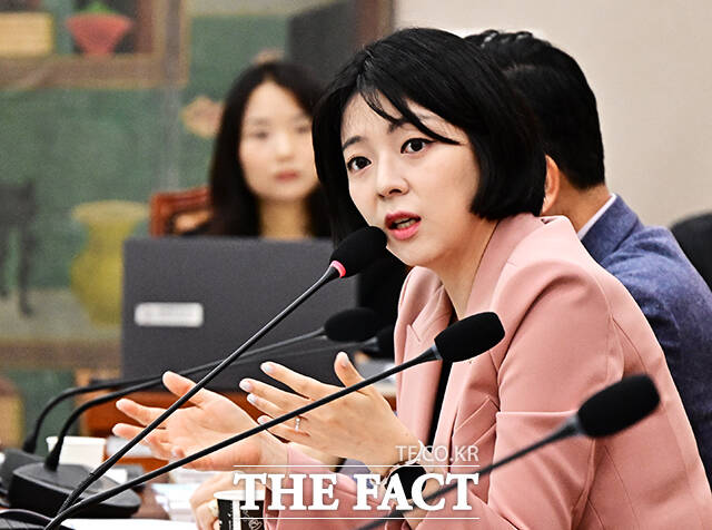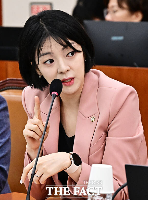 [더팩트ㅣ국회=배정한 기자] 배현진 국민의힘 의원이 25일 오전 서울 여의도 국회에서 열린 문화체육관광위원회 전체회의에 참석해 추경안 관련 질의를 하고 있다.