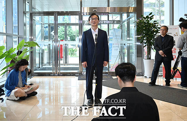 [더팩트ㅣ박헌우 기자] 전재수 해양수산부 장관 후보자가 25일 오후 서울 마포구 포스트타워에 마련된 인사청문회 준비 사무실에 출근하며 소감을 밝히고 있다.