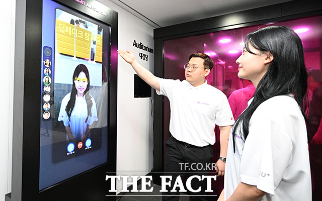 [더팩트ㅣ박헌우 기자] 26일 오전 서울 용산구 LG서울역빌딩에서 열린 '익시오 안티딥보이스(ixi-O Anti-DeepVoice)' 출시 AI 보안 기술설명회에 마련된 체험존에서 LG유플러스 직원들이 합성된 영상의 진위 여부를 파악할 수 있는 AI 기술인 안티딥페이크를 시연하고 있다.cjg05023@tf.co.kr사진영상기획부 photo@tf.co.kr