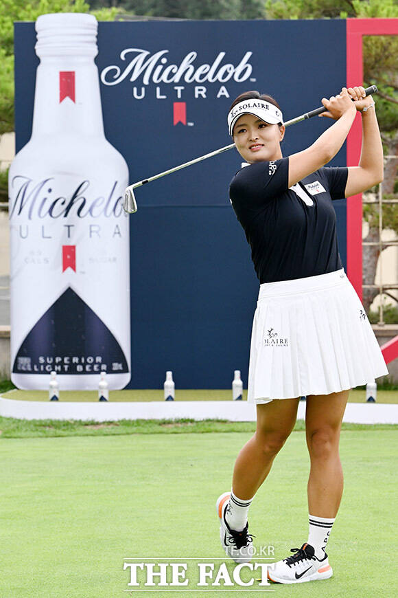 [더팩트ㅣ파주=남용희 기자] 고진영이 26일 오후 경기도 파주시 파주 제이퍼블릭 골프클럽에서 열린 '울트라 홀 챌린지'에서 포즈를 취하고 있다.