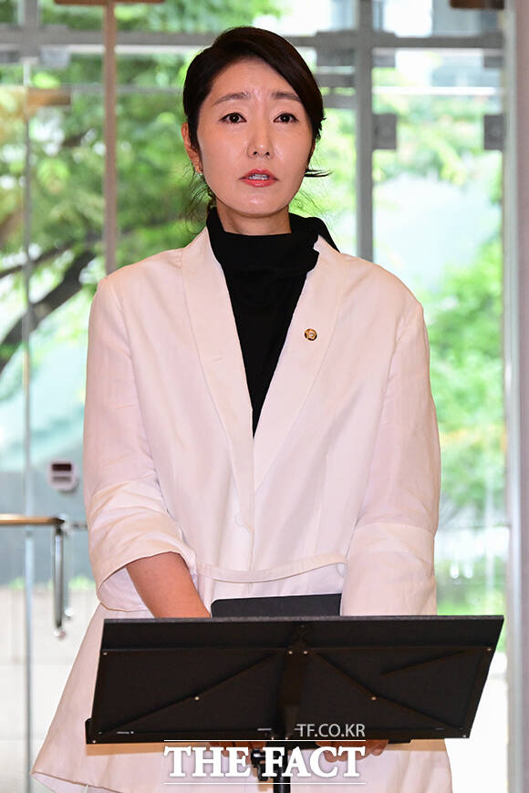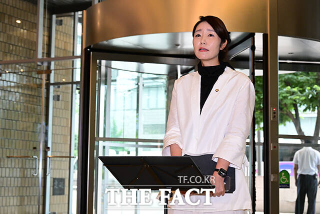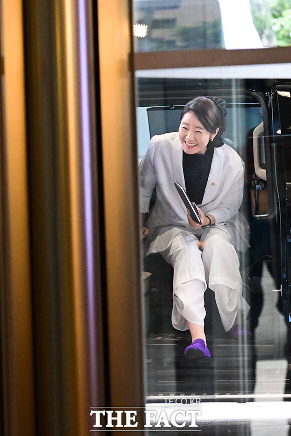 [더팩트ㅣ남윤호 기자] 강선우 여성가족부 장관 후보자가 26일 오후 서울 종로구 이마빌딩에 마련된 인사청문회 준비 사무실로 출근하며 지명 소감 발표에 앞서 고개숙이고 있다.
