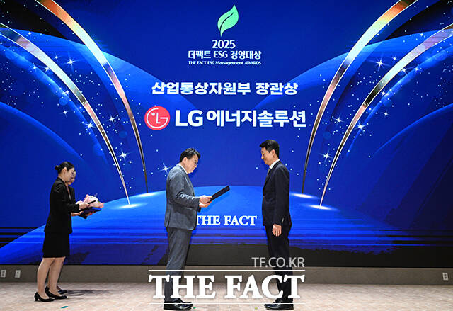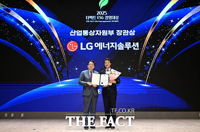 [더팩트ㅣ박헌우 기자] 특종에 강한 신개념 대중 종합지 <더팩트>가 주최하는 '2025 ESG 경영대상' 시상식이 26일 오후 서울 영등포구 여의도 한국거래소(KRX) 컨퍼런스홀에서 열려 최남호 산업통상자원부 2차관(왼쪽)이 전동욱 LG에너지솔루션 상무에게 시상 후 기념촬영을 하고 있다.