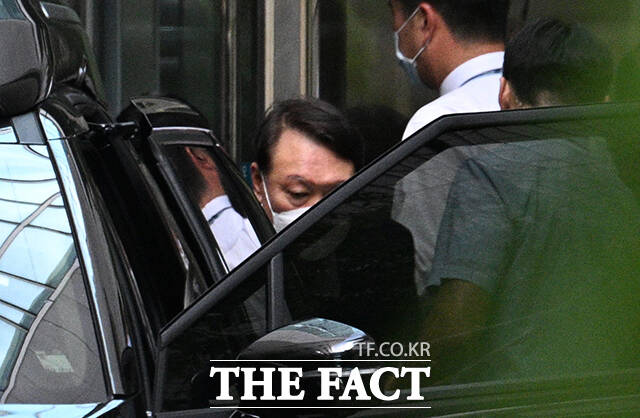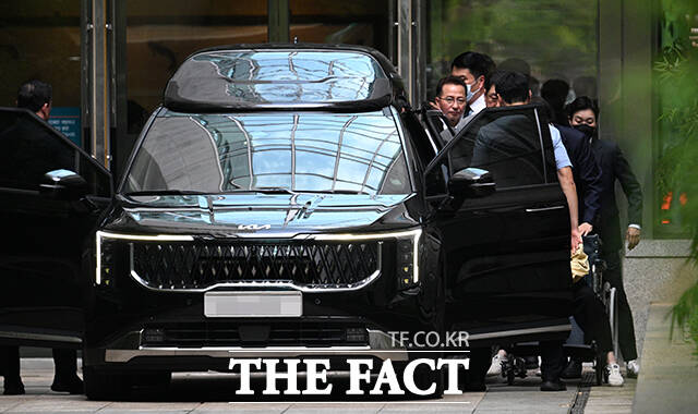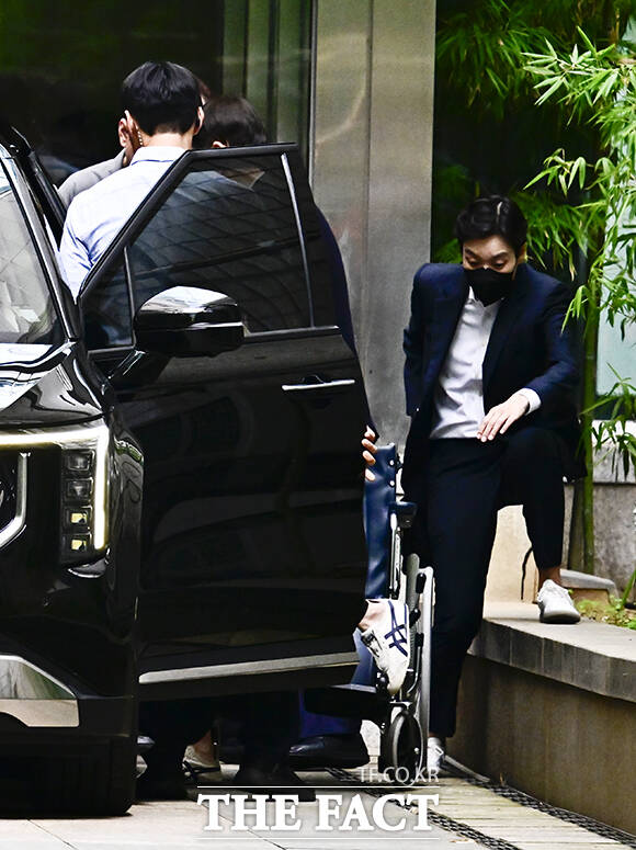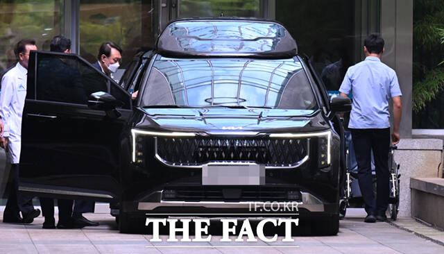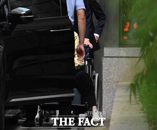 '얼굴은 철통보안' 휠체어 타고 퇴원하는 김건희 [TF포착]
