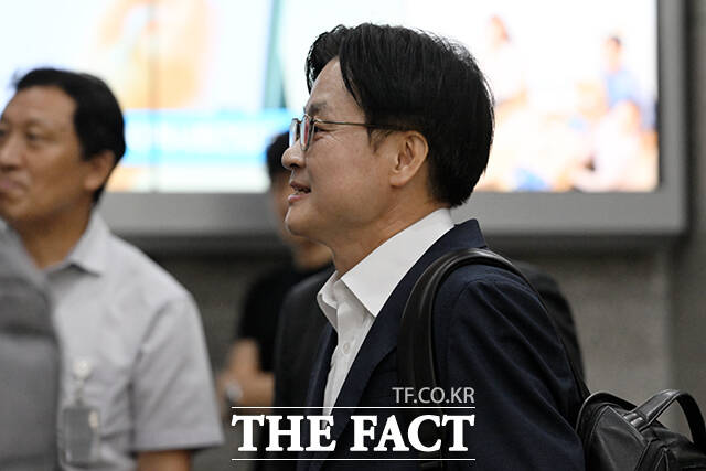 [더팩트ㅣ서예원 기자] 김정관 산업통상자원부 장관 후보자가 30일 오전 서울 강남구 한국기술센터에 마련된 인사청문회 준비 사무실에 출근하고 있다.