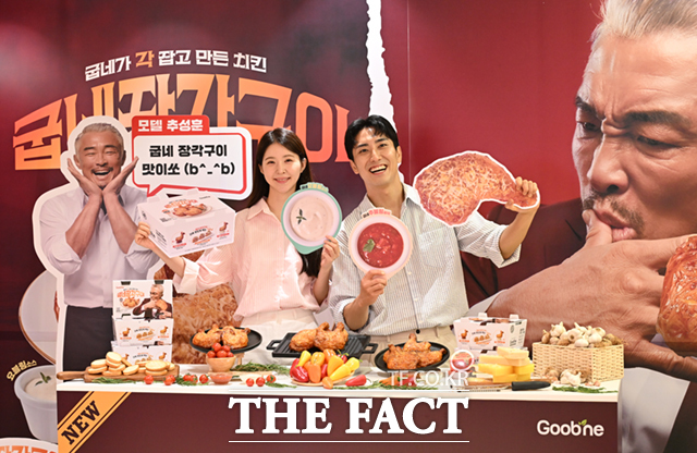 [더팩트ㅣ이새롬 기자] 오븐요리 프랜차이즈 굽네치킨을 운영하는 지앤푸드가 신제품 '굽네 장각구이'를 출시하고 격투기 선수 추성훈을 모델로 발탁한 가운데, 1일 오전 서울 마포구 굽네 플레이타운에서 열린 출시 기념 행사에서 모델들이 포즈를 취하고 있다.