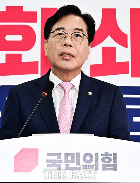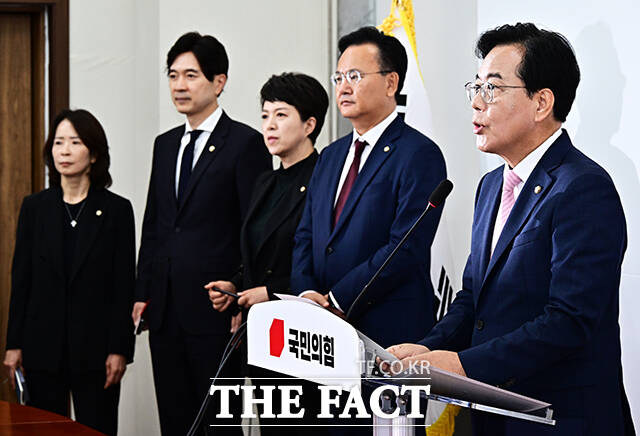 [더팩트ㅣ국회=배정한 기자] 송언석 국민의힘 비상대책위원장 겸 원내대표가 2일 오전 서울 여의도 국회에서 열린 비상대책위원장 취임 기자회견에 참석해 발언을 하고 있다.