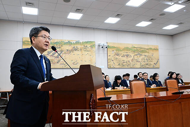 [더팩트ㅣ국회=남윤호 기자] 오석환 교육부 차관이 2일 오전 서울 여의도 국회에서 열린 교육위원회 전체회의에 출석해 인사하고 있다.