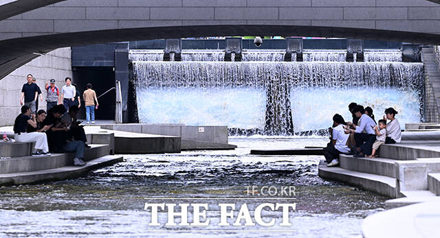 [더팩트ㅣ서예원 기자] 전국 대부분 지역에 폭염특보가 발효된 2일 오후 서울 종로구 청계천을 찾은 시민들이 다리 아래 그늘에서 더위를 식히며 휴식을 취하고 있다.