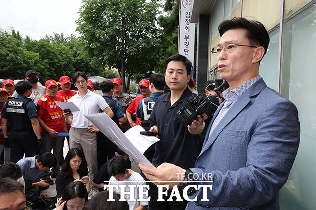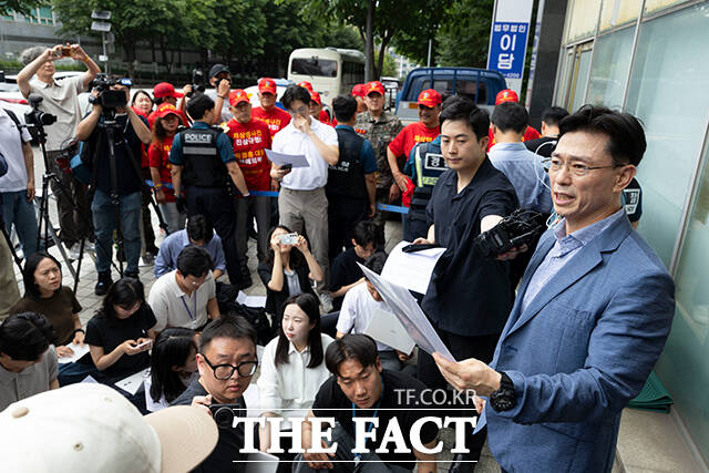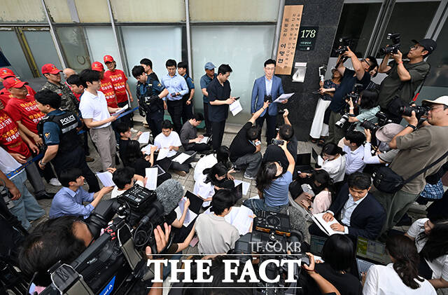 [더팩트ㅣ박헌우 기자] 임성근 전 해병대 1사단장이 2일 오후 서울 서초구에 마련된 채상병 특검팀 사무실에 출석하며 입장을 밝히고 있다.