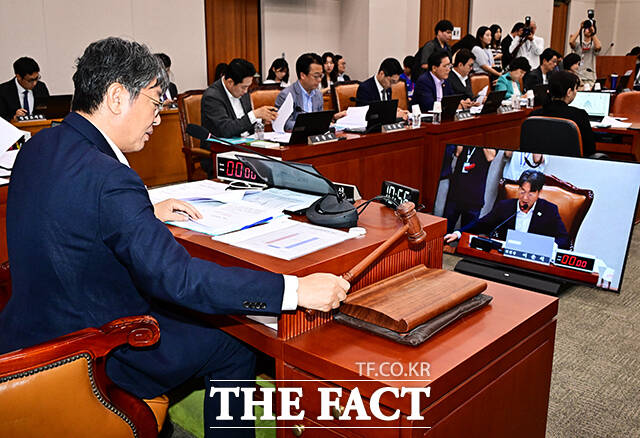 [더팩트ㅣ국회=배정한 기자] 이춘석 법사위원장이 3일 오전 서울 여의도 국회에서 열린 법제사법위원회 전체회의에 참석해 안건을 상정하고 있다.