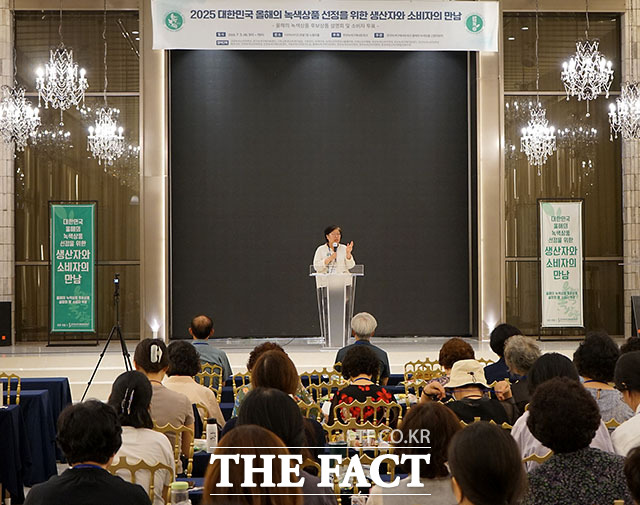 [더팩트ㅣ이효균 기자] 한국녹색구매네트워크(KGPN: Korea Green Purchasing Network) ‘올해의 녹색상품선정위원회(공동선정위원장 전인수, 한승호)’가 200여명의 소비자투표단이 참여한 ‘소비자가 직접 뽑은 2025 대한민국 올해의 녹색상품(약칭: 올녹상)’ 선정을 위한 투표를 7월 3일 서울 서초구 더 리버사이드 호텔에서 진행했다. 유미화 올녹상 소비자평가위원장이 소비자 투표단에게 소비자 투표 개요에 대해 설명하고 있다.