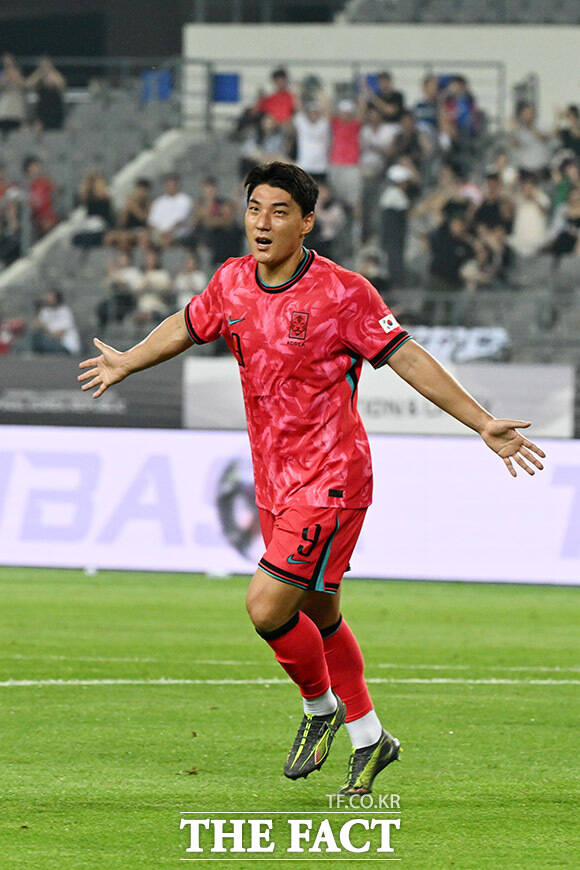 [더팩트ㅣ용인미르스타디움=남용희 기자] 대한민국과 중국의 동아시아축구연맹(EAFF) E-1 챔피언십(동아시안컵) 개막 경기가 7일 오후 경기 용인시 용인미르스타디움에서 열린 가운데 주민규가 득점 후 기뻐하고 있다.