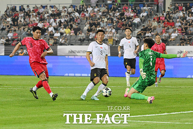 [더팩트ㅣ용인미르스타디움=남용희 기자] 대한민국과 중국의 동아시아축구연맹(EAFF) E-1 챔피언십(동아시안컵) 개막 경기가 7일 오후 경기 용인시 용인미르스타디움에서 열린 가운데 주민규가 슈팅을 시도하고 있다.