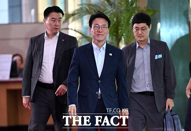 [더팩트ㅣ임영무 기자] 김민석 국무총리가 8일 오후 서울 종로구 정부서울청사로 등청하고 있다.