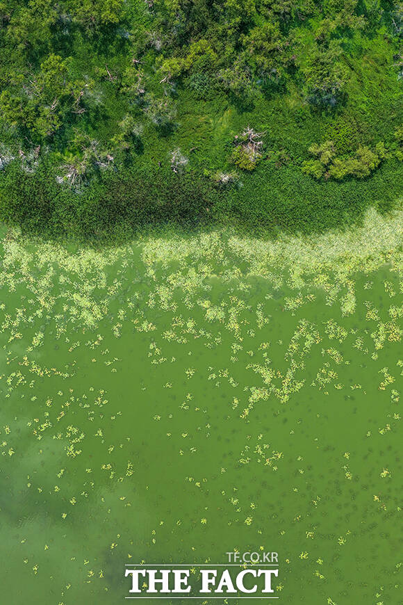 지속되는 폭염에 '녹조로 가득 차버린 왕송호수' [TF사진관]