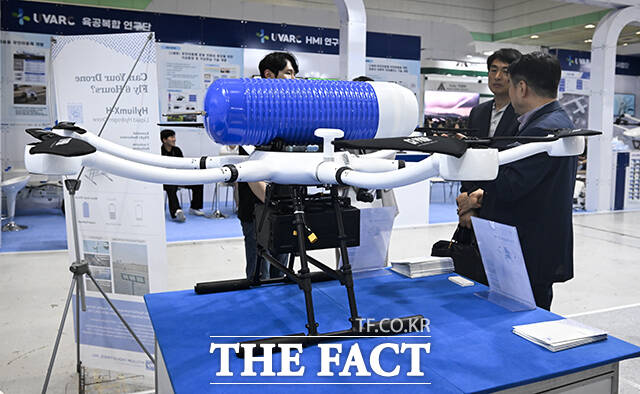 [더팩트ㅣ장윤석 기자] '2025 무인이동체산업체엑스포 & 2025 자율주행모빌리티산업전'이 10일 오전 서울 강남구 코엑스에서 열린 가운데 수소배터리 기반 드론이 전시돼 있다.j3321362@tf.co.kr사진영상기획부 photo@tf.co.kr