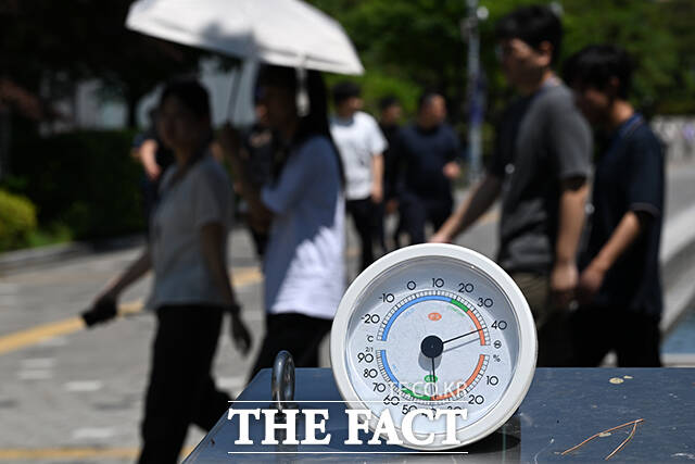 기상청에 따르면 이날 서쪽 지역과 내륙을 중심으로 최고체감온도가 35도 내외로 올라 매우 덥겠다. 주요 지역 낮 최고기온은 △서울 35도 △인천 33도 △춘천 34도 △철원 33도 △원주 35도 △강릉 28도 △대전 34도 △세종 34도 △대구 32도 △부산 31도 △광주 35도 △제주 30도 등이다.