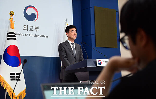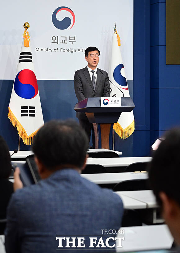 [더팩트ㅣ임영무 기자] 이재웅 외교부 대변인이 10일 오후 서울 종로구 외교부에서 정례브리핑을 하고 있다.