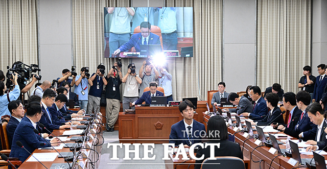 [더팩트ㅣ국회=남윤호 기자] 10일 오후 서울 여의도 국회에서 열린 운영위원회 전체회의에서 김병기 위원장이 의사봉을 두드리고 있다.