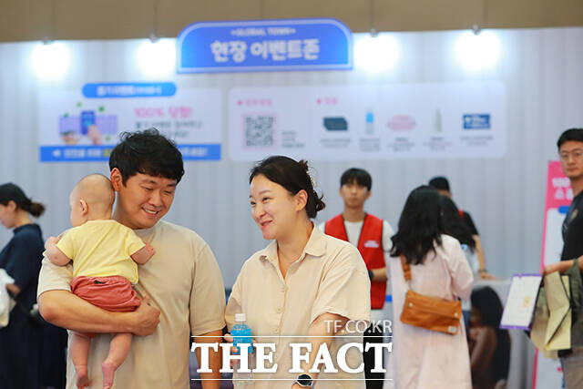 [더팩트ㅣ임영무 기자] 동아오츠카(대표이사 사장 박철호)가 10일 서울 삼성동 코엑스에서 열린 '2025 글로벌 베이비페어'에 참가한 가운데 한 가족이 포카리스웨트 이온워터 부스에서 제품을 시음하고 있다.