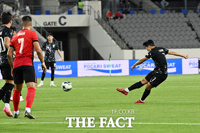 [더팩트ㅣ용인미르스타디움=남용희 기자] 대한민국과 홍콩의 동아시아축구연맹(EAFF) E-1 챔피언십(동아시안컵) 경기가 11일 오후 경기 용인시 용인미르스타디움에서 열린 가운데 나상호가 슈팅을 시도하고 있다.