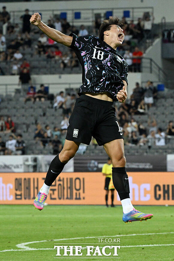 [더팩트ㅣ용인미르스타디움=남용희 기자] 대한민국과 홍콩의 동아시아축구연맹(EAFF) E-1 챔피언십(동아시안컵) 경기가 11일 오후 경기 용인시 용인미르스타디움에서 열린 가운데 이호재가 득점 후 기뻐하고 있다.