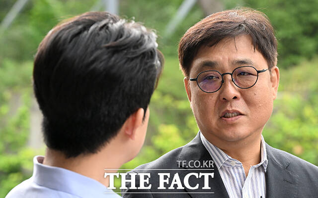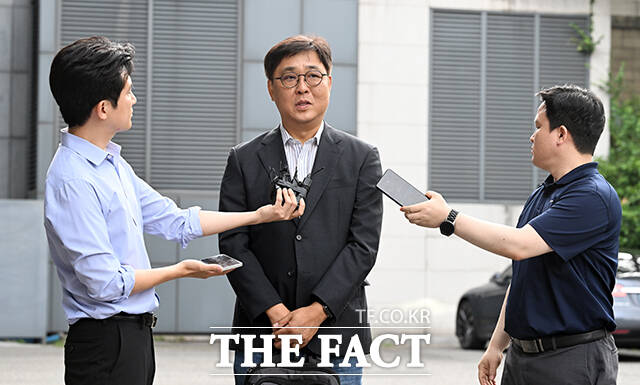 [더팩트ㅣ임영무 기자] 최휘영 문화체육관광부 장관 후보자가 14일 오전 서울 종로구 삼청로 국립현대미술관에 마련된 인사청문 준비 사무실에 첫 출근하며 소감을 밝히고 있다.