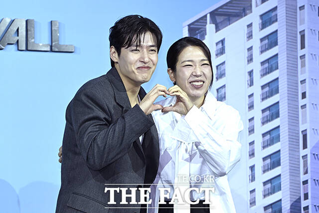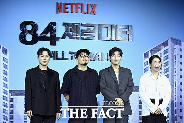[더팩트ㅣ장윤석 기자] 배우 서현우와 강하늘, 염혜란(왼쪽부터)이 14일 오전 서울 중구 앰배서더 서울 풀만 호텔에서 열린 넷플릭스 새 영화 '84제곱미터' 제작발표회에 참석해 포즈를 취하고 있다.