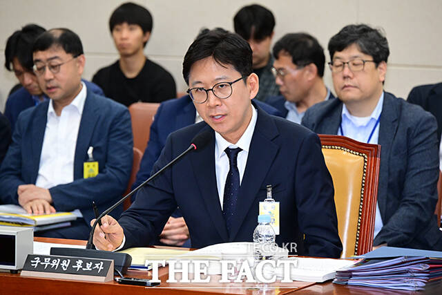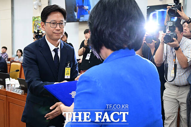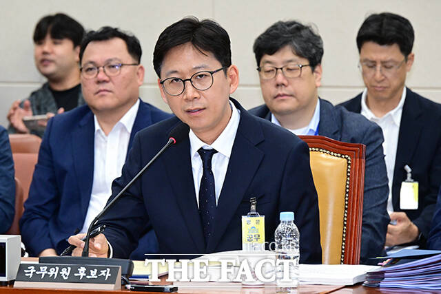 [더팩트ㅣ국회=남윤호 기자] 배경훈 과학기술정보통신부 장관 후보자가 14일 오후 서울 여의도 국회 과학기술정보방송통신위원회에서 열린 인사청문회에 출석해 증인 선서를 하고 있다.