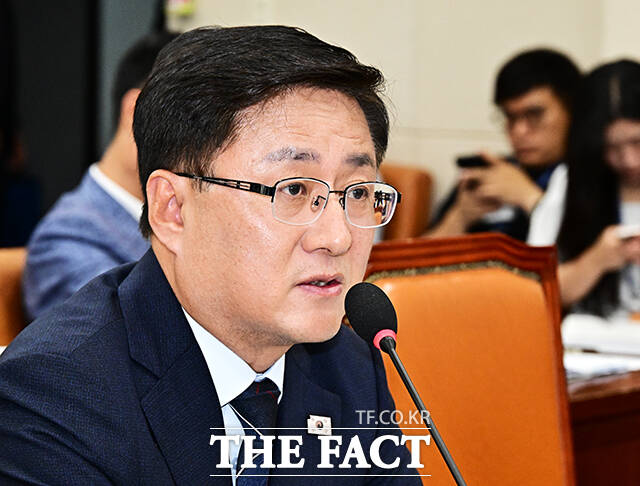 [더팩트ㅣ국회=배정한 기자] 김성환 환경부 장관 후보자가 15일 오전 서울 여의도 국회에서 열린 인사청문회에 참석해 질의에 답변을 하고 있다.