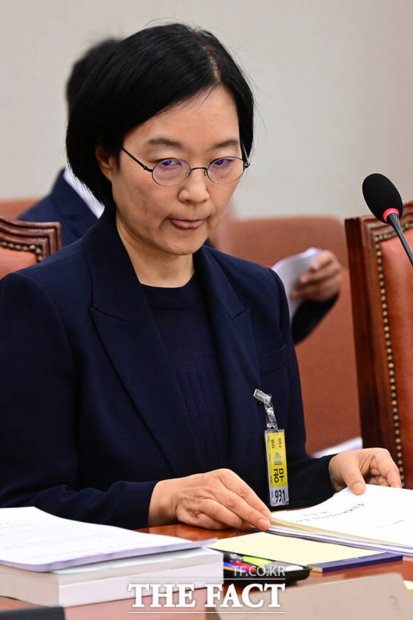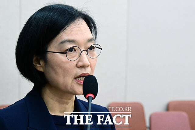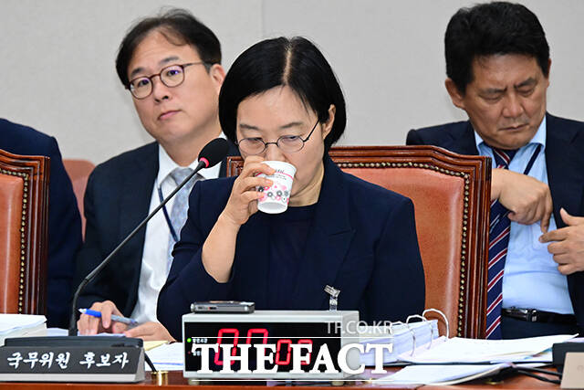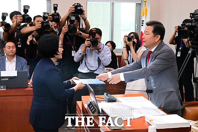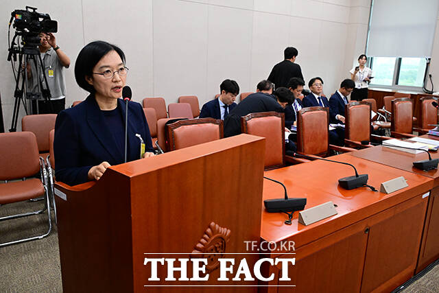 [더팩트ㅣ국회=남윤호 기자] 한성숙 중소벤처기업부 장관 후보자가 15일 오전 서울 여의도 국회 산업통상자원중소벤처기업위원회에서 열린 인사청문회에 출석해 증인 선서를 하고 있다.