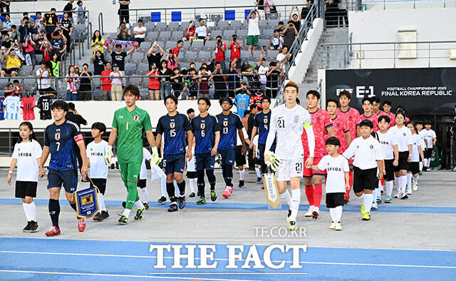 [더팩트ㅣ용인미르스타디움=남용희 기자] 대한민국과 일본의 동아시아축구연맹(EAFF) E-1 챔피언십(동아시안컵) 경기가 15일 오후 경기 용인시 용인미르스타디움에서 열린 가운데 양 팀 선수단이 경기를 위해 입장하고 있다.