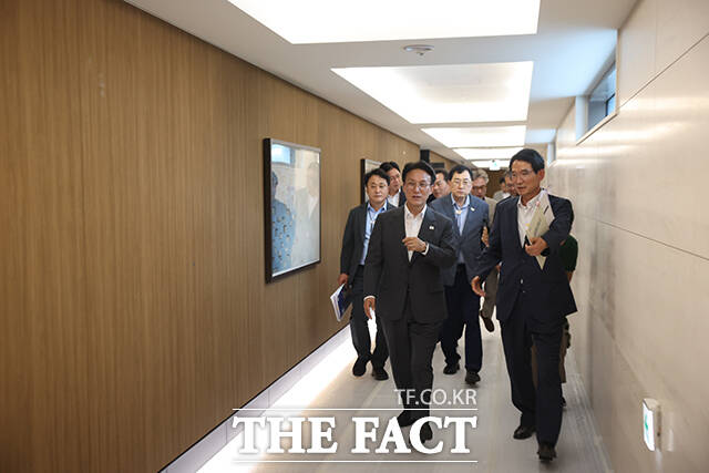 [더팩트ㅣ임영무 기자] 김민석 국무총리(왼쪽 두 번째)가 15일 오후 경북 경주 2025 APEC 정상회의 준비 현장을 찾아 숙박시설 및 서비스 준비 현황을 점검하고 있다.
