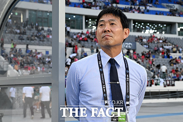[더팩트ㅣ용인미르스타디움=남용희 기자] 대한민국과 일본의 동아시아축구연맹(EAFF) E-1 챔피언십(동아시안컵) 경기가 15일 오후 경기 용인시 용인미르스타디움에서 열린 가운데 모리야스 하지메 일본 대표팀 감독이 경기를 지켜보고 있다.