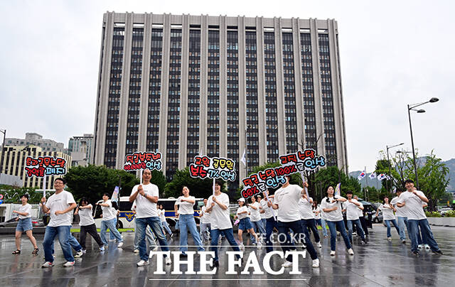 정부서울청사 앞에서 펼쳐진 '공무원 보수 현실화' 촉구 플래시몹 [TF사진관]