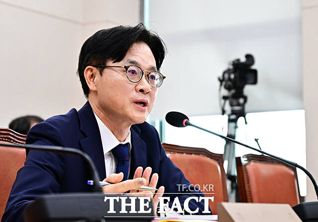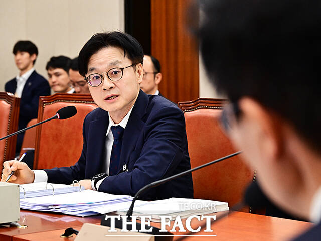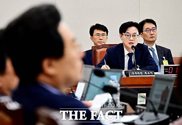 [더팩트ㅣ국회=배정한 기자] 김정관 산업통상자원부 장관 후보자가 17일 오전 서울 여의도 국회에서 열린 인사청문회에 참석해 질의에 답변을 하고 있다.
