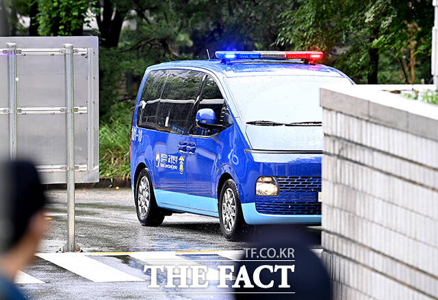 [더팩트ㅣ사진공동취재단] 구속 수감된 윤석열 전 대통령이 탑승한 호송차가 18일 오전 서울 서초구 서울중앙지방법원으로 들어서고 있다.