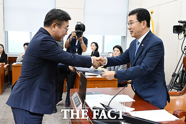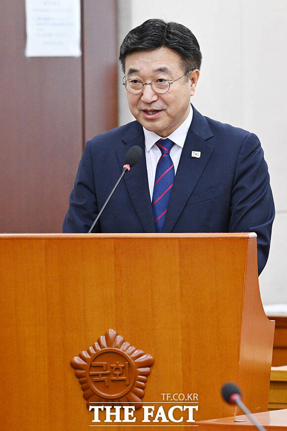 [더팩트ㅣ국회=남용희 기자] 윤호중 행정안전부 장관 후보자가 18일 오전 서울 여의도 국회 행정안전위원회에 출석해 의원 질의에 답하고 있다.