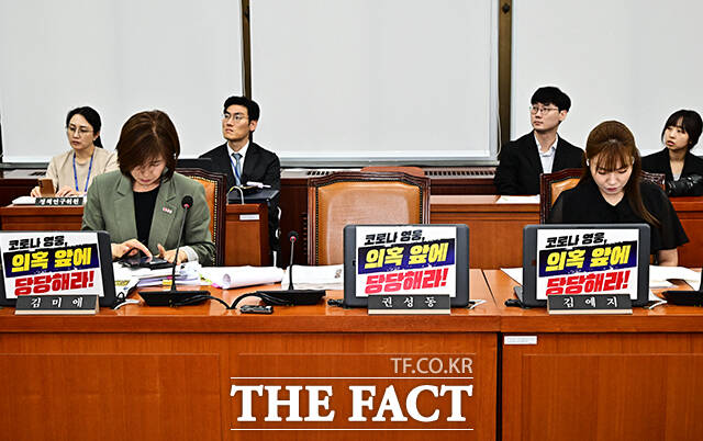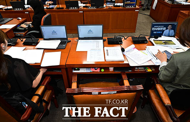 [더팩트ㅣ국회=배정한 기자] 정은경 보건복지부 장관 후보자의 인사청문회가 18일 오후 서울 여의도 국회 보건복지위원회에서 열린 가운데 김건희 특검팀의 압수수색을 받은 권성동 의원의 좌석이 비어있다.
