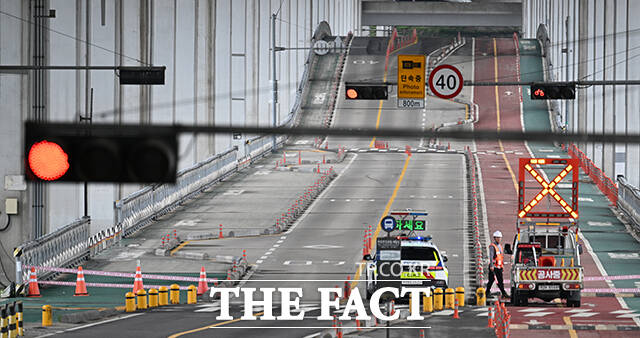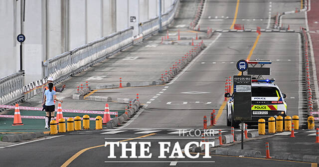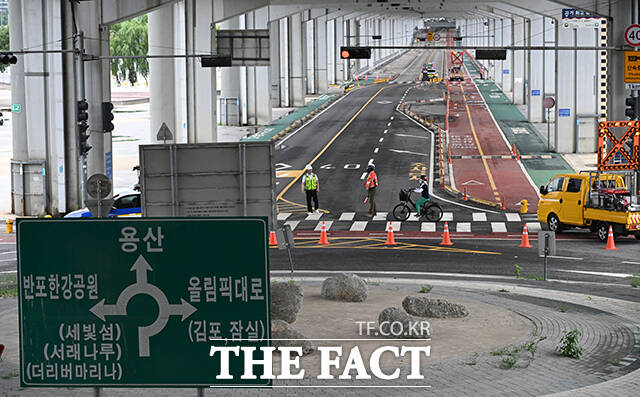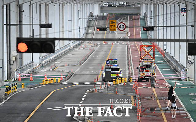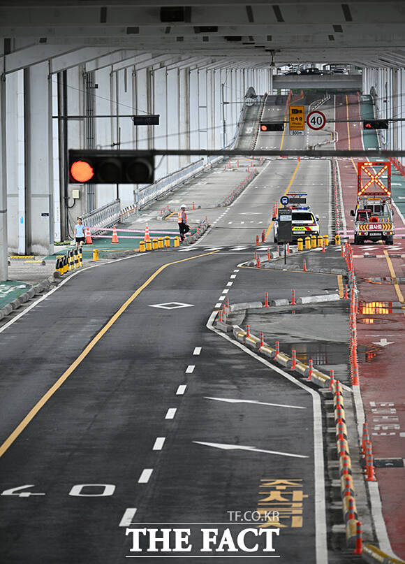 [더팩트ㅣ박헌우 기자] 20일 오후 서울 서초구 잠수교의 차량 통행이 통제되고 있다.