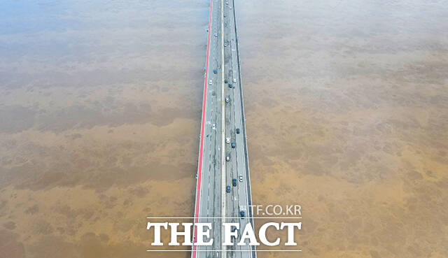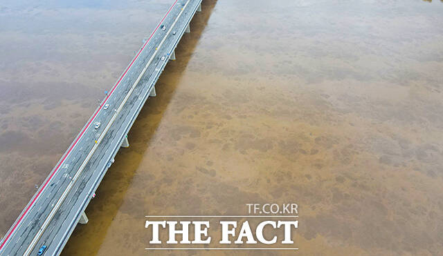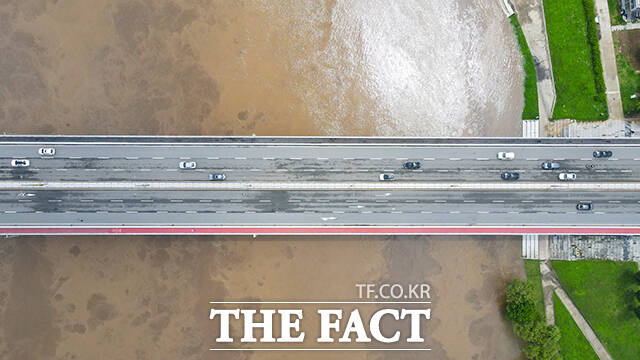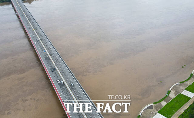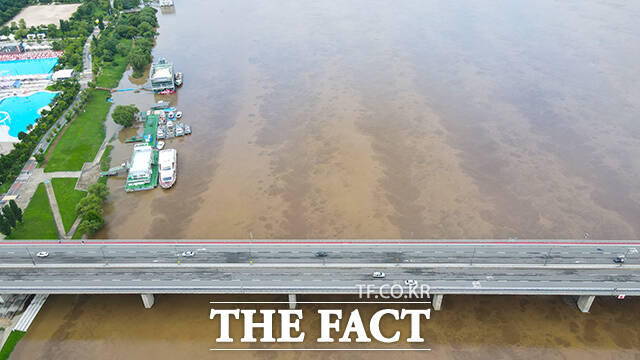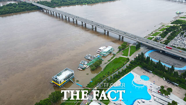 [더팩트ㅣ박헌우 기자] 중부지방의 집중호우가 이어진 20일 오후 서울 영등포구 서강대교 아래 한강이 흙탕물로 변해 있다.
