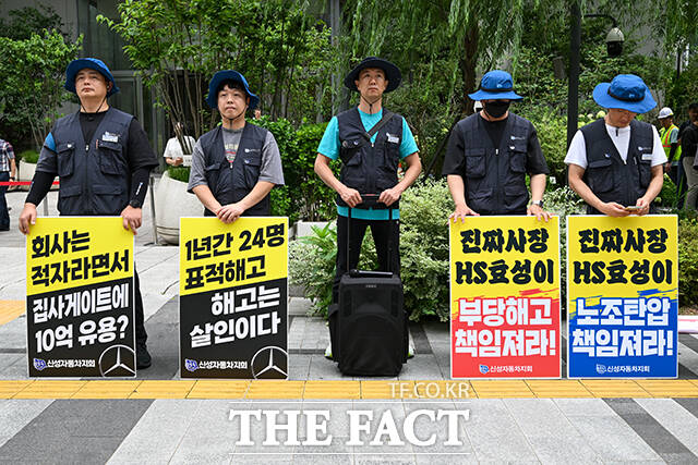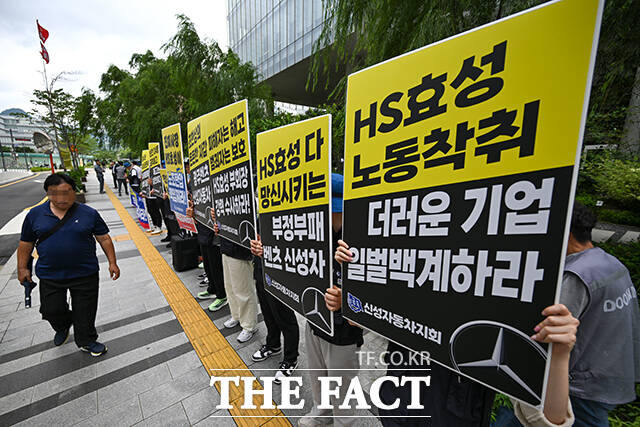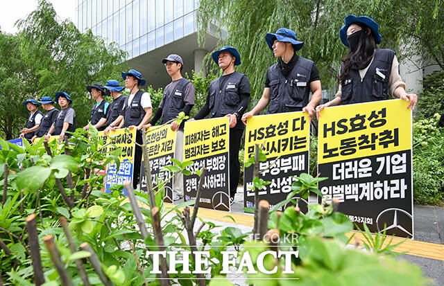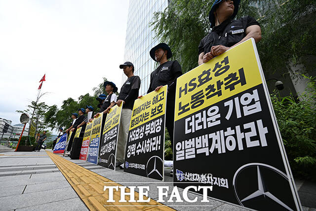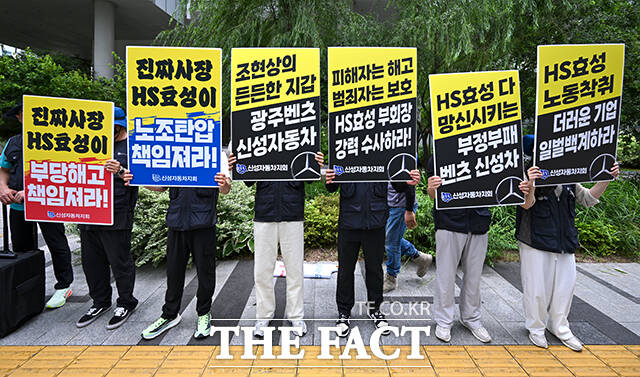 이어 "메르세데스-벤츠 딜러사인 신성자동차가 1년 넘게 24명의 노동조합원을 해고하거나 퇴사시키는 등 부당노동행위를 일삼고 있는데, 신성자동차의 실소유주는 조 부회장이라고" 밝혔다.